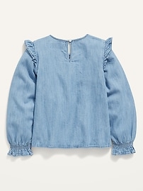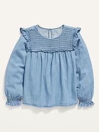 Haut en chambray à volants à manches longues pour Fille
