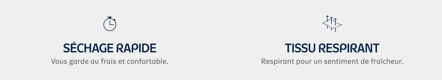 Feature icons: Quick Drying—keeps you cool and comfy; Breathable—allows feel-good airflow.