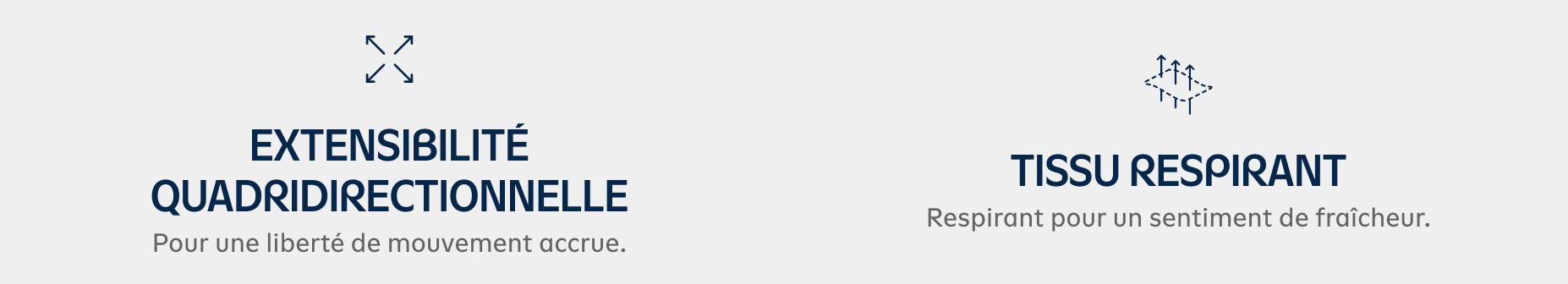 Extensibilité quadridirectionnelle et tissu respirant, pour plus de liberté de mouvement et de fraîcheur.