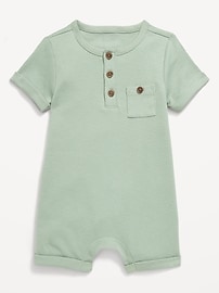 Barboteuse une-pièce côtelée à col henley à motif pour bébé
