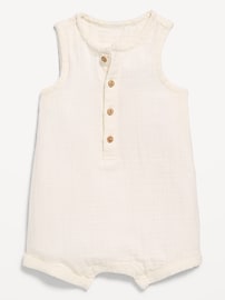 Barboteuse une-pièce henley sans manches à tissage double pour bébé