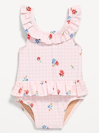 Maillot de bain une-pièce avec bordure à volants et motif pour bébé