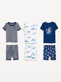 Pyjama 6 pièces ajusté en tricot côtelé à motif pour tout-petit et bébé