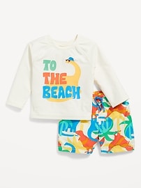 Unisex Raglan-Sleeve Rashguard Swim Top & Trunks for Baby