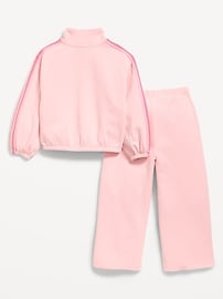 Dynamic Fleece Quarter-Zip and Wide-Leg Sweatpants Set for Toddler Girls