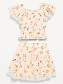 Printed Short-Sleeve Top and Skirt Set for Toddler Girls