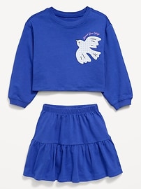 Long-Sleeve Graphic Sweatshirt and Skirt Set for Toddler Girls