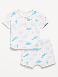Printed Waffle-Knit Henley Shirt and Shorts Set for Baby