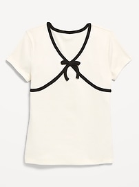 Fitted Short-Sleeve Ribbed Bow Top for Girls
