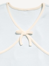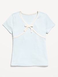 Fitted Short-Sleeve Ribbed Bow Top for Girls