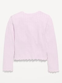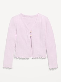 Pointelle-Knit V-Neck Cardigan for Girls