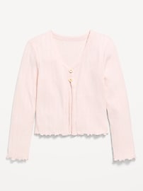 Pointelle-Knit V-Neck Cardigan for Girls