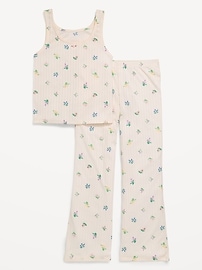 Printed Ribbed Pajama Tank Top and Flare Pants Set for Girls