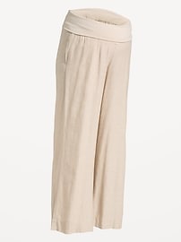 Maternity Rollover Waist Linen-Blend Wide-Leg Pants