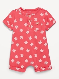 Printed Ribbed Henley Pocket One-Piece Romper for Baby